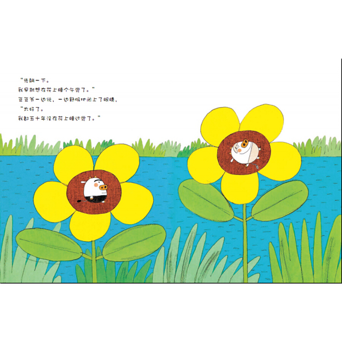豆豆爷早就盼着快点成为爷爷了,因为成为爷爷豆豆爷就老了,就会变得和豆豆牛一样小,就可以和豆豆牛一起玩了。现在,豆豆爷真的老了,他和豆豆牛一起趴在青蛙的背上过河,抓着蜥蜴爬上树干,又抓着树叶从树上飞下来。豆豆爷还给豆豆牛讲了自己年轻时在大海里冒险的故事。豆豆牛太羡慕豆豆爷了。