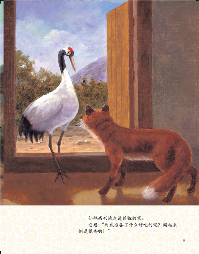仙鹤高兴地走进狐狸的家。