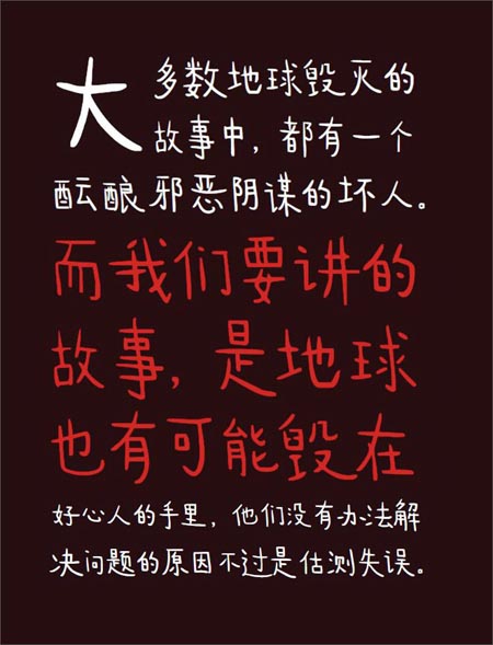 大多数地球毁灭的故事中,都有一个酝酿邪恶阴谋的坏人。而我们要讲的故事,是地球也有可能毁在好心人的手里,他们没有办法解决问题的原因不过是估测失误。
