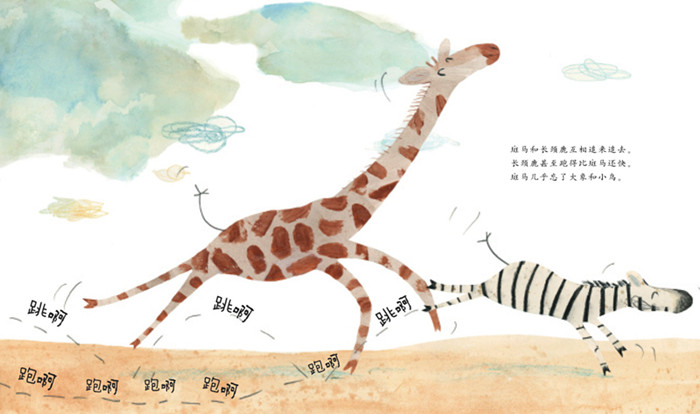 图画书阅读不局限于刻画的画面有多精美,呈现的色彩有多绚烂;图与文有机结合,交融成一体,两者共生,才是真正的好作品。正如这一本《跑得太快的斑马》,珍妮稚拙的拼贴涂鸦,呈现出画家的自由个性,却也紧扣文本,成为文字骨架上生长出来的血肉。有感染力的作品,一定要再读一遍!
