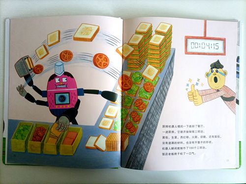 机器人中心的电话响不停 都是需要请求帮助的: 章鱼机器人负责照顾四胞胎宝宝 力量机器人帮助搬家 厨师机器人一下子做了三百个三明治 探测机器人不时发送月球探索进展 消防机器人嗖的飞去灭火 救援机器人冲进火场救人 医疗机器人正在诊断病人 手术机器人可以做更精准细致手术 军事机器人可以穿梭在危险的战场上 海底机器人对海底进行勘测 宇宙机器人探测宇宙,维护卫星 类人机器人更真实的模仿人类 ……