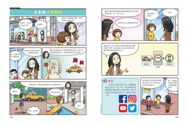 “大英儿童漫画百科”是经大英百科全书公司权威授权、大英百科研究部门审核内容,采用最新的图形和绘制技术精心打造,以孩子们的兴趣点为中心,完整构建十大知识领域,全方位满足少年儿童的知识需求。该丛书以《大英百科全书》的内容知识为基础,形式活泼有趣,为孩子深入浅出地讲述相关科学知识。本书稿的主题以“未来职业”为中心,小学生罗云和美琪在纪录片编剧申世界的带领下,前往各个职业选取素材。在采访和实地体验的过程中,他们发现第四次工业革命给社会职业带来了巨大变化,有一些职业过去存在,现今却消失了;有一些职业,在未来极有可能会被人工智能机器人所替代;而在瞬息万变的现代社会,帮助人们排解压力的新职业也随之产生——大数据专家、物联网开发工程师、人工智能律师、生命信息分析家等,在这趟职业发现之旅中,罗云和美琪体验到未来职业的新奇和智能,深入了解到未来潜在职业对人类所要求的各项技能。