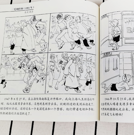 这本书中的三毛漫画选自于张乐平先生创作的《早期三毛》《三毛外传》《三毛今昔》和《三毛日记》漫画书,与本社出版的《三毛流浪记》《三毛从军记》《三毛解放记》《三毛新生记》中的漫画并无重复之处。这本全新的三毛漫画书分作三个篇章来讲述三毛的故事,分别是“顽皮的三毛”“新旧三毛”和“三毛的新生活”。“顽皮的三毛”讲述的是三毛和爸爸、妹妹妞妞在家乡的生活故事,那时候的三毛相对是幸福的,有爸爸在身边,有妹妹在陪伴,那时候的三毛也是调皮淘气,滑稽幽默的,这个篇章的漫画故事富有儿童趣味。在“新旧三毛”的篇章里,作者将旧社会里的三毛生活和新社会里的三毛生活用画笔记录下来,进行对照,用幸福和苦难的鲜明对比,让没有遭受过旧社会苦难的小朋友们懂得珍惜现在的幸福生活。在“三毛的新生活”里,三毛是个在新社会里长大的孩子,过上了幸福快乐的生活,身体也变得健康强壮了,作者在这个篇章里更多地记录了三毛的生活故事、校园故事,三毛依然调皮可爱,但更加聪明勇敢了。“顽皮的三毛”“新旧三毛”和“三毛的新生活”这样一个篇章的安排,充分体现了30年代都市小顽童、40年代流浪的三毛和新中国幸福快乐的三毛成长变化的脉络,无论在哪个年代,
