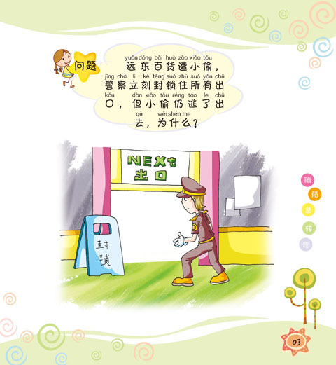 每册书精选近200则左右符合小学生理解水平和知识程度的脑筋急转弯,它们幽默风趣。集娱乐性和益智性于一体。这些问题看似平常,可是思考的过程却让你急得直挠头,而得出的答案却又会让你捧腹大笑。更重要的是,它们能帮助你打破原有的思维定势,发挥超常思维,培养你从多角度思考问题的好习惯。
