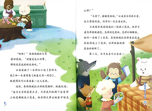 这部童话的主角是一只由云朵变化而成的“云朵熊”。它兼具云朵的特性(如能变化形态、会飞翔)和熊的特征(如爱睡懒觉、爱吃蜂蜜)。云朵熊来到生机盎然的绿森林,与熊爸爸胖嘟、熊妈妈瑞拉组成新的家庭,并结识了许多动物朋友,共同经历了一系列幽默有趣又温馨感人的故事。