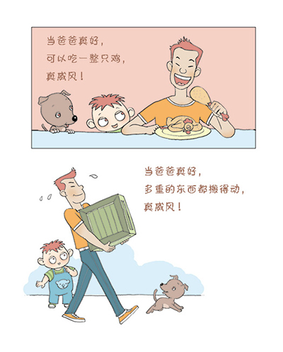 小男孩梦见自己当爸爸了,醒后体味到了爸爸的辛苦。