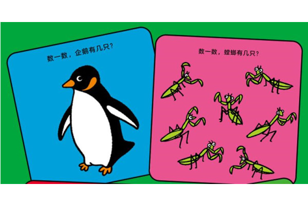 数一数,小动物有几只?小企鹅变身数字1,海狮变身数字2,蝙蝠变身数字3……猫咪变身数字1和0。10以内的数字,用各种小动物的形态进行表现。绘本后拉页还附有多达130种小动物,可爱、憨态可掬。