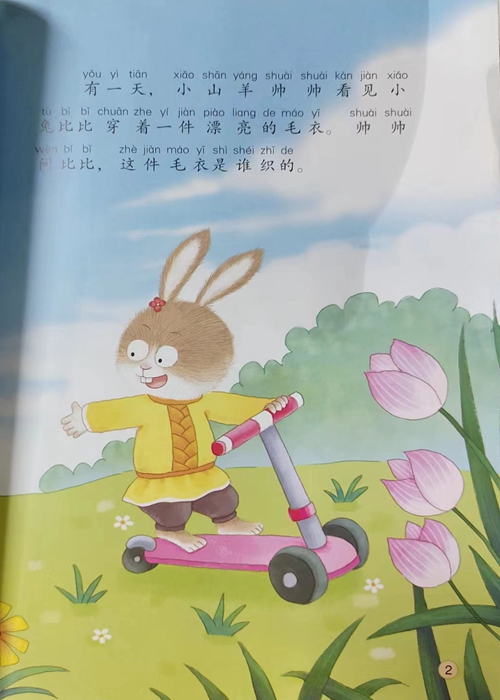 小山羊帅帅把自己的羊毛剪下来请河马大婶织了一件漂亮的毛衣他把毛衣送给了妹妹帅帅真是一个好哥哥!