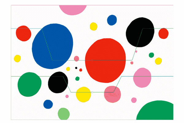 大大小小的圆点、随意挥洒的涂鸦、色彩鲜艳的形状,通过翻页不断重组,这里有133种搭配方式,制造出你自己的艺术作品。
