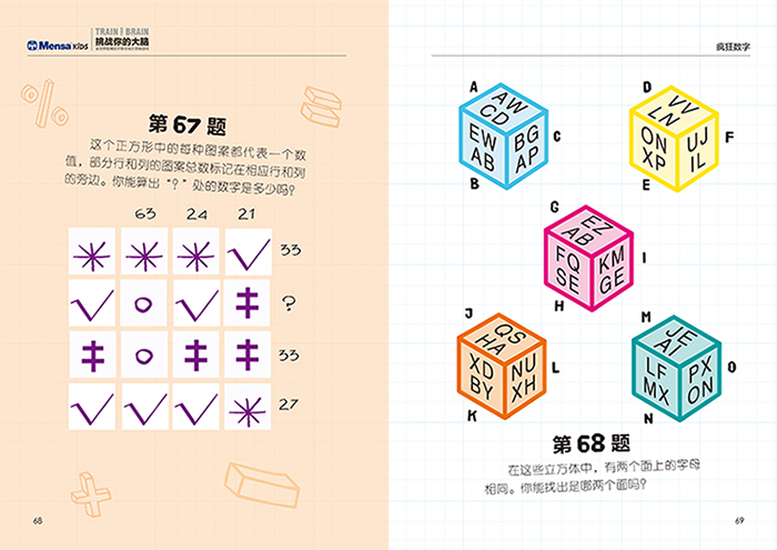大脑的系统训练要从小开始。通过这套书的题目,可以从观察力、专注力、反应力、逻辑性、发散性等方面综合训练孩子们的脑力。门萨是高智商的象征,门萨的题目趣味性强,非常适合孩子们从小接触脑力项目,练就“最强大脑”。