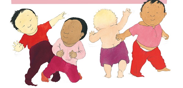 这套书中,每一页上都有黑色肤色、棕色肤色的宝宝,也有亚洲肤色和白色肤色的宝宝。海伦特意让四个不同肤色的婴孩挤在同一个画面里,其乐融融。因为海伦认为,每个孩子都应该能在图画书中找到自己的影子,都能感受到我是属于这样的世界。