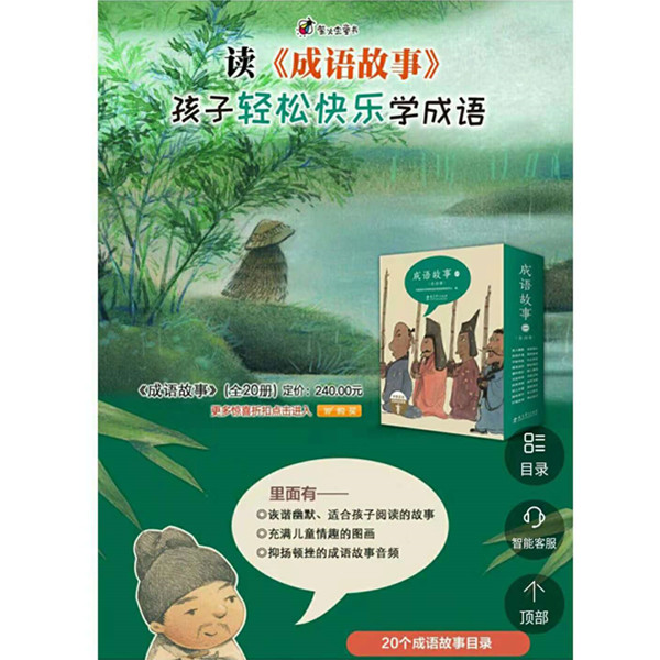 《成语故事(第1辑)》共20册,每册1个成语故事,通过图画书的形式讲述成语故事,帮助幼儿理解成语内涵,轻松学习成语。该书由中国教育科学研究院学前教育研究中心组织学前教育、古代文学、儿童插画、装帧设计、播音主持等领域的多位知名专家、学者共同打造,其故事编写贴近儿童的兴趣,符合儿童的阅读特点,能够被儿童轻松理解。同时,该书绘画均体现了传统文化的特点,既有文化底蕴,又有儿童情趣,适合儿童阅读和欣赏。