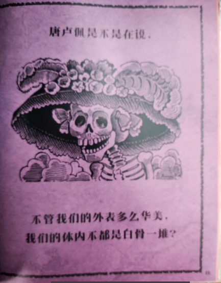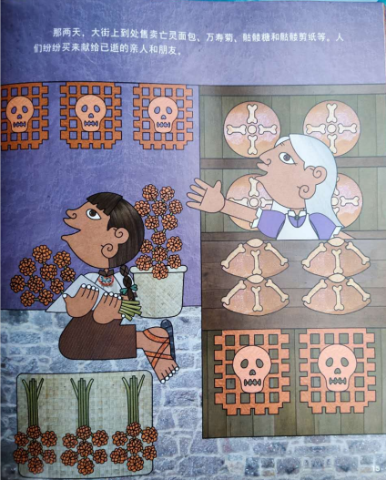 l 独特的创作手法,现代又复古,滑稽而有趣!作者创造性地从前哥伦布时期的艺术中汲取灵感,采用手绘和数字拼贴的方式,营造出现代而又韵味独特的风格,让这本满是骷髅形象的书并不可怕,反而非常滑稽有趣。