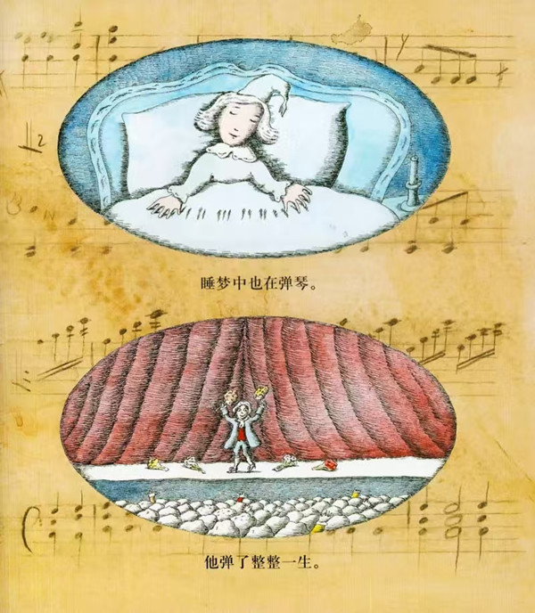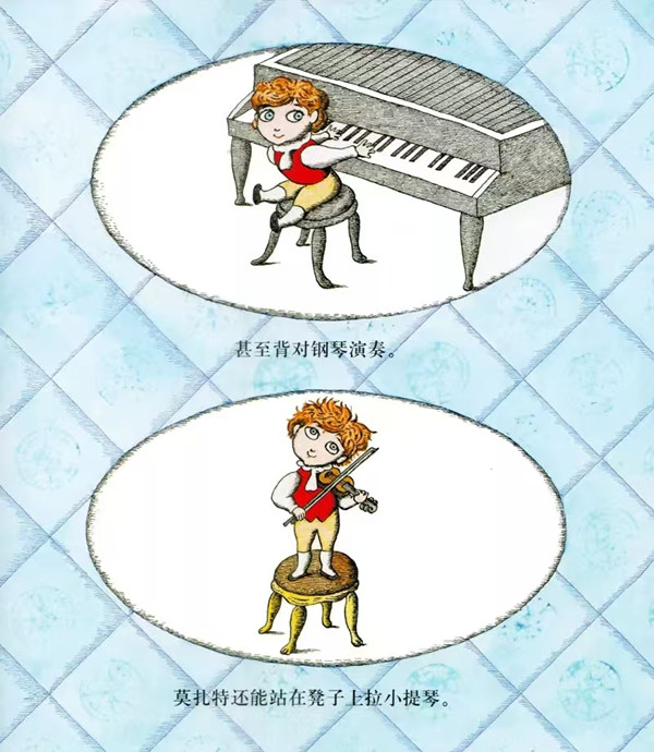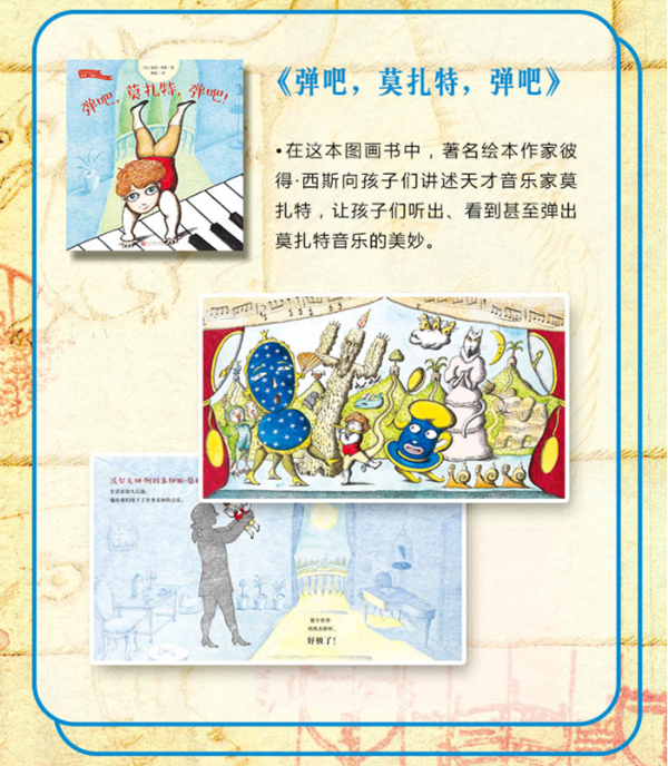 这是一本传记故事绘本。听啊,一个名叫沃尔夫冈·阿玛多伊斯·莫扎特的小男孩正在弹钢琴。看啊,他在背对着钢琴弹呢!他在蒙着眼睛弹琴呢!想象一下吧,他的一生会是怎样的呢?在这本图画书中,著名绘本作家彼得·西斯向孩子们讲述天才音乐家莫扎特,让孩子们听出、看到甚至弹出莫扎特音乐的美妙。