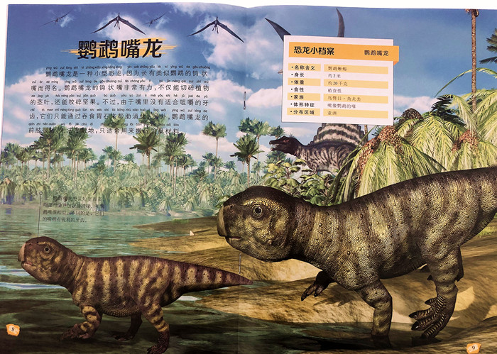 本书主要用精美的图片来展示神秘又有趣的恐龙世界,简洁活泼的文字则起辅助说明的作用,这种编排方式符合幼儿的阅读心理。而且正文还加注了拼音,既能让父母和孩子进行阅读,也能培养孩子自主阅读的能力。