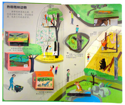 这是一座奇妙的动物园,里面有来自世界各地不同环境中的动物:热带雨林的动物、极地的动物、热带草原的动物、澳大利亚的动物......