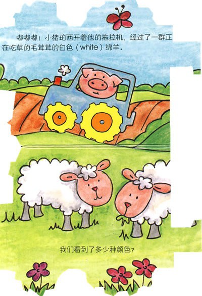把一个可爱的“拖拉机头”和两个带挂钩的“车厢”卡在一起,小拖拉机便组装完毕了!司机小猪带大家开始有趣的冒险旅程。一路上,可以看到很多农场的动物朋友们,他们不仅会和小朋友快乐地玩,而且还会教给小朋友关于颜色、形状和反义词的知识!