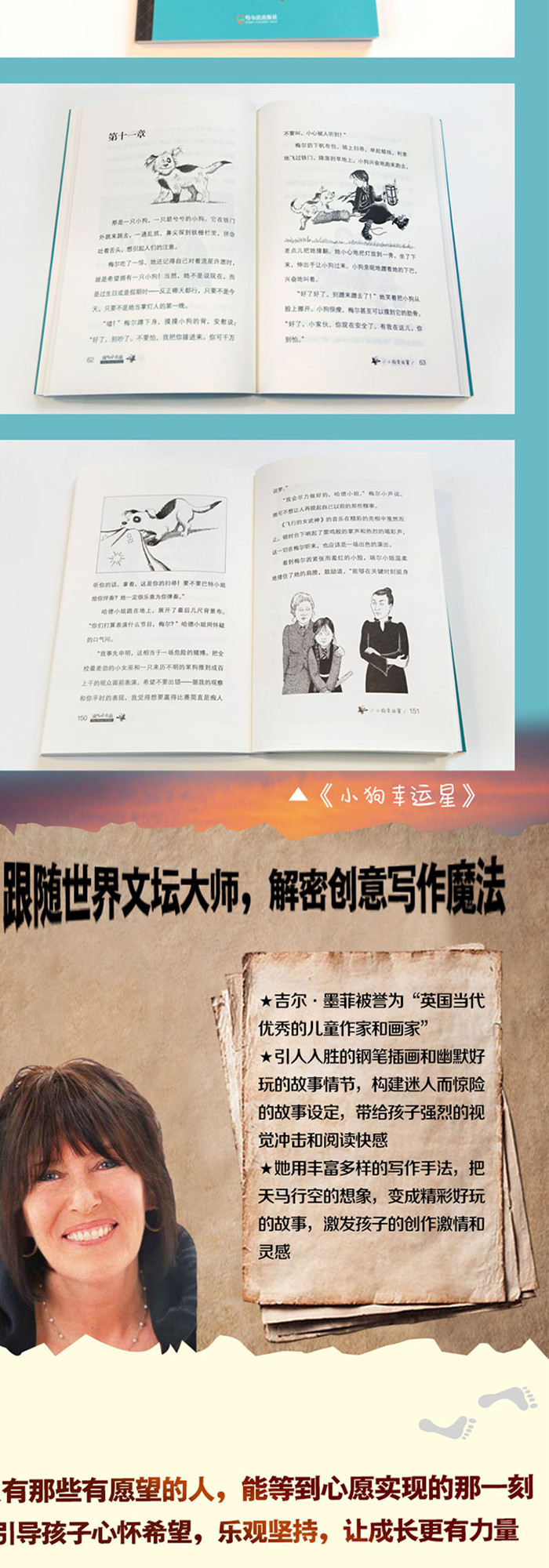 魔法版 “成长的烦恼”,列入英国中小学***书目 一、这本书以校园生活为主题,加入魔法、友情、动物……都是孩子喜欢的元素。让人目不暇接的各种魔法和扣人心弦的故事情节,引导孩子解决成长里的困惑和烦恼 只有那些有愿望的人,能等到心愿实现的那一刻,引导孩子心怀希望,乐观坚持,让成长更有力量。 二、《哈利·波特》作者J.K.罗琳的创作灵感来源,跟随世界文坛大师,解密创意写作魔法 娓娓道来的故事充满吸引力,提升孩子的写作水平;好玩有趣的对话,锻炼孩子的语言能力;丰富多样的写作手法,把天马行空的想象,变成精彩好玩的故事,激发孩子的创作激情和灵感。