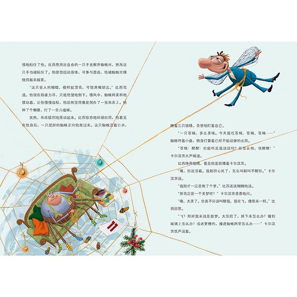 这是一套温暖、妙趣横生的关于虫子世界的故事书。 蜘蛛和苍蝇因意外而相识,从最初苍蝇成为蜘蛛的圣诞节大餐,到苍蝇为蜘蛛办生日会、一起经受自然世界恶劣环境的考验、蜘蛛对友情的背叛与及时的修复、苍蝇从马蜂窝里营救蜘蛛……最终蜘蛛和苍蝇成为朋友。他俩有碰撞,但又互相理解和帮助,在奇趣生活中,冲破重重考验,认识并领会了友情的真谛,以及如何保持初心和本真去适应各种环境。 这套书语言幽默风趣、想象奇特、故事扣人心弦,是一套开阔儿童视野、激发想象、浸润思想的优质儿童小说。