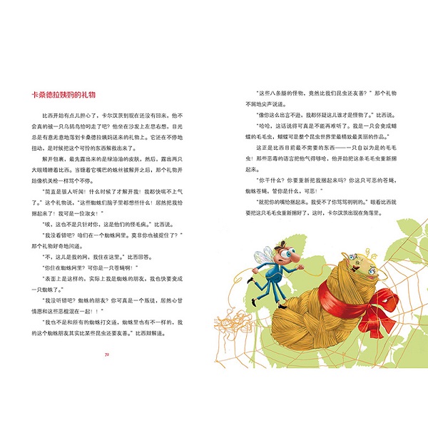这是一套温暖、妙趣横生的关于虫子世界的故事书。 蜘蛛和苍蝇因意外而相识,从最初苍蝇成为蜘蛛的圣诞节大餐,到苍蝇为蜘蛛办生日会、一起经受自然世界恶劣环境的考验、蜘蛛对友情的背叛与及时的修复、苍蝇从马蜂窝里营救蜘蛛……最终蜘蛛和苍蝇成为朋友。他俩有碰撞,但又互相理解和帮助,在奇趣生活中,冲破重重考验,认识并领会了友情的真谛,以及如何保持初心和本真去适应各种环境。 这套书语言幽默风趣、想象奇特、故事扣人心弦,是一套开阔儿童视野、激发想象、浸润思想的优质儿童小说。