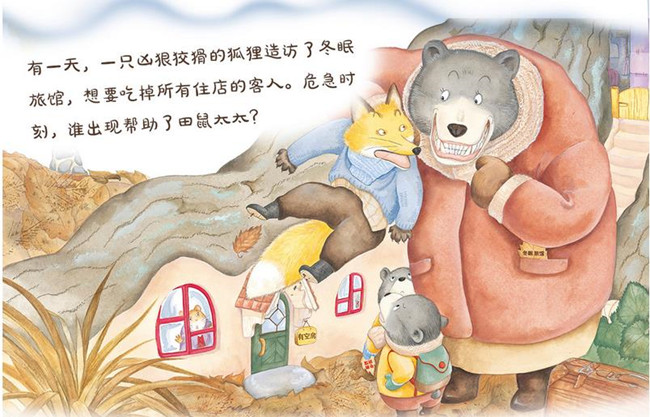 建议分类:儿童文学-图画故事这是我社出版的启发精选世界优秀畅销绘本系列,适合3岁以上的儿童阅读。冬天到了,许多动物都要冬眠。不需要冬眠的田鼠太太由于害怕寂寞,就把自己的家改装成冬眠旅馆,迎接需要冬眠的各种动物们。很快,花栗鼠、睡鼠、蝙蝠等动物们都来住店冬眠了。有一天,一只凶狠狡猾的狐狸造访了冬眠旅馆,要田鼠太太交出所有住店的客人,不然就把她吃掉。田鼠太太平安度过危机了么?冬眠旅馆又会迎来什么样的客人呢?