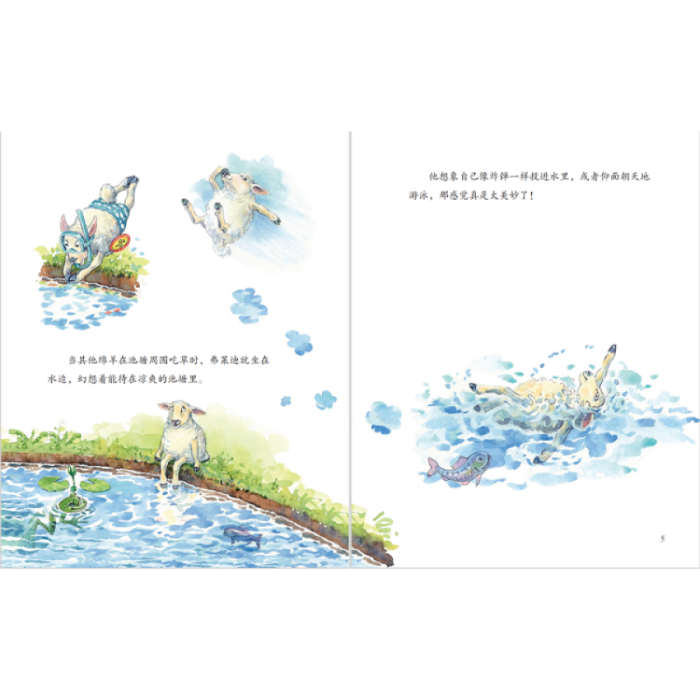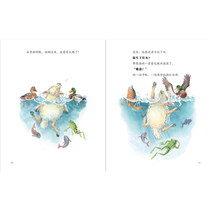 小绵羊弗莱迪很想游泳,他梦想着能跳进池塘跟鱼儿、鸭子一起玩水。 可是,厚重的羊毛让游泳变得阻碍重重。 他尝试了很多方法,一次又一次…… 最后,弗莱迪的愿望实现了吗? 这是一本有趣又暖心的绘本。故事温馨、有趣,画面明丽、灵动,这本绘本告诉小朋友在实现梦想的道路上会遇到困难和挫折,但只要坚持不懈,开动脑筋,转换思维,扬长避短,就能扫除障碍取得成功。