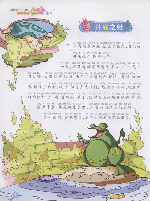 这本《影响孩子_生的世界经典寓言》汇集了近百则中外经典寓言故事,通过歌颂故事中的真、善、美,揭露讽刺了伪、丑、恶。让孩子们在欢笑中感悟人生的真谛,在成长的过程中慢慢领悟其中蕴含的哲理。