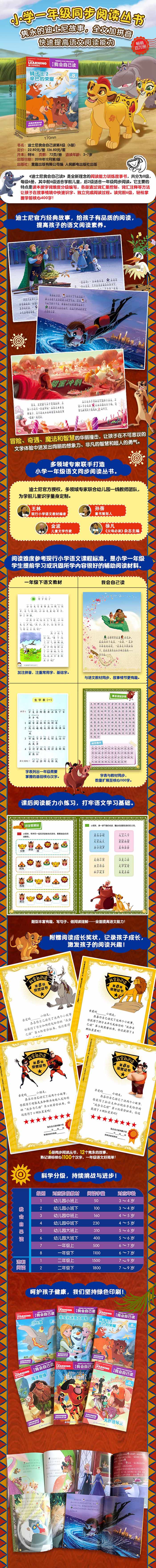 这是一本图画故事书。通过《无敌破坏王》的有趣故事,帮助孩子实现独立阅读。图书选自迪士尼全球知名品牌——无敌破坏王,遵循3-6岁幼儿的阅读习惯,逐级设定字表。全文加注拼音,助力一年级语文学习。每册附有重点字表和第8级总字表。另外每册最后附有小奖状,孩子完成阅读后,得到奖状,以获取自信感。