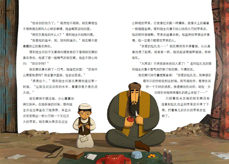 爸爸从前是位学识丰富的教师,他不仅精通普什图语和达里语,还熟知阿富汗的历史和地理,每一代王朝,每一座山峰,他都能够如数家珍般地说出来。爸爸在学校里教大大小小的孩子识文断字,还为他们讲述这座城市和这个国家的苦难与荣光、失落与梦想。