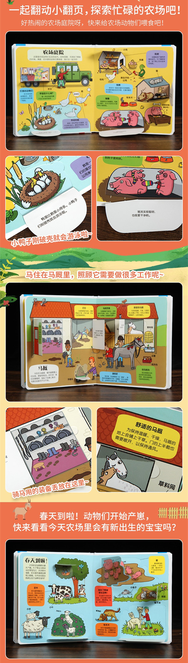 这是一本有趣的科普翻翻书。你去过农场吗?农场里有哪些可爱的动物?它们都住在哪里?是如何生活的?除了动物农场里都有哪些蔬菜和水果?农场里有哪里粮食?农场里还有哪些农用机械……小朋友们快来做一个小小探险家,和我们一起去探索农场里的奥秘吧!图书中活泼幽默的语言,趣味盎然的图画,让孩子在笑声中轻松学习农场知识。