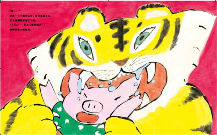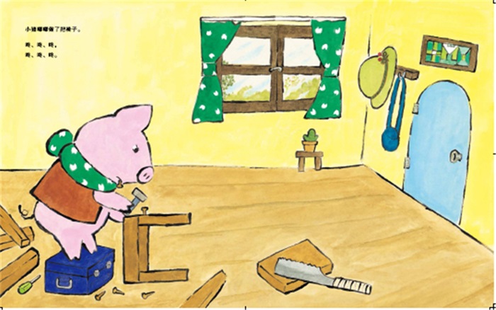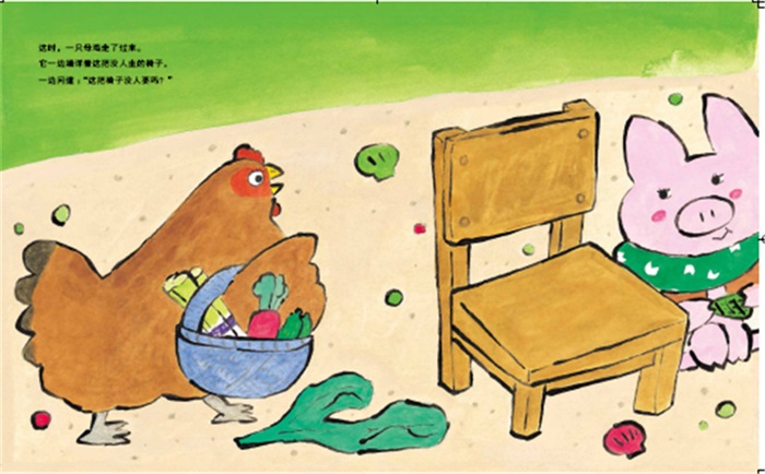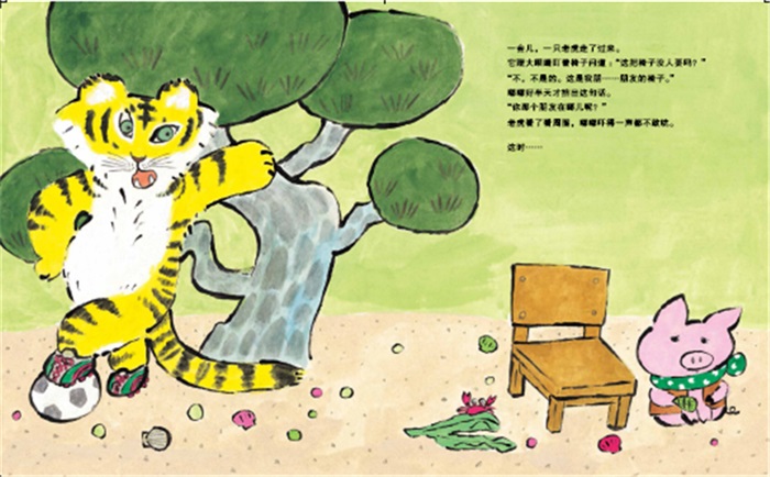 《朋友的椅子》可以归入儿童社交类绘本,两位作者围绕如何交朋友以及如何维系朋友进行了探讨。故事一开始,小猪嘟嘟做了把椅子,因为想交朋友,就给椅子起名“朋友的椅子”,之后嘟嘟就带着小椅子到了海边,期待会有谁出现成为自己的朋友……谁知道一只霸道的小老虎不仅一屁股坐在了椅子上,还要吃掉嘟嘟!这时,文弱的嘟嘟大声喊出了交朋友的规则:“朋友不能吃朋友!”