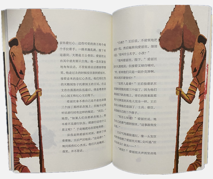 爱丽丝漫游奇境》是一部重量经典儿童文学。 故事讲述了小女孩爱丽丝追赶一只揣着怀表、会说话的白兔,掉进了一个兔子洞,由此坠入了神奇的地下世界。在这个世界里,喝一口水就能缩得如同老鼠大小,吃一块蛋糕又会变成巨人,同一块蘑菇吃右边就变矮,吃其左边则又长高,狗发脾气时便咆哮和摇尾巴,而猫咆哮和摇尾巴却是因为高兴。在这个世界里,似乎所有吃的东西都有些古怪。