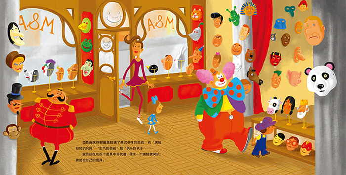 这是一本幽默可爱,充满童趣的单本绘本。讲述了小演员爱丽丝通过一张“微笑面具”克服了心中的恐惧,成功地给观众们带来精彩演出的故事。故事的结尾,当爱丽丝摘下面具面对观众的一刻,却突然发现,面具下的自己其实才最更美丽。
