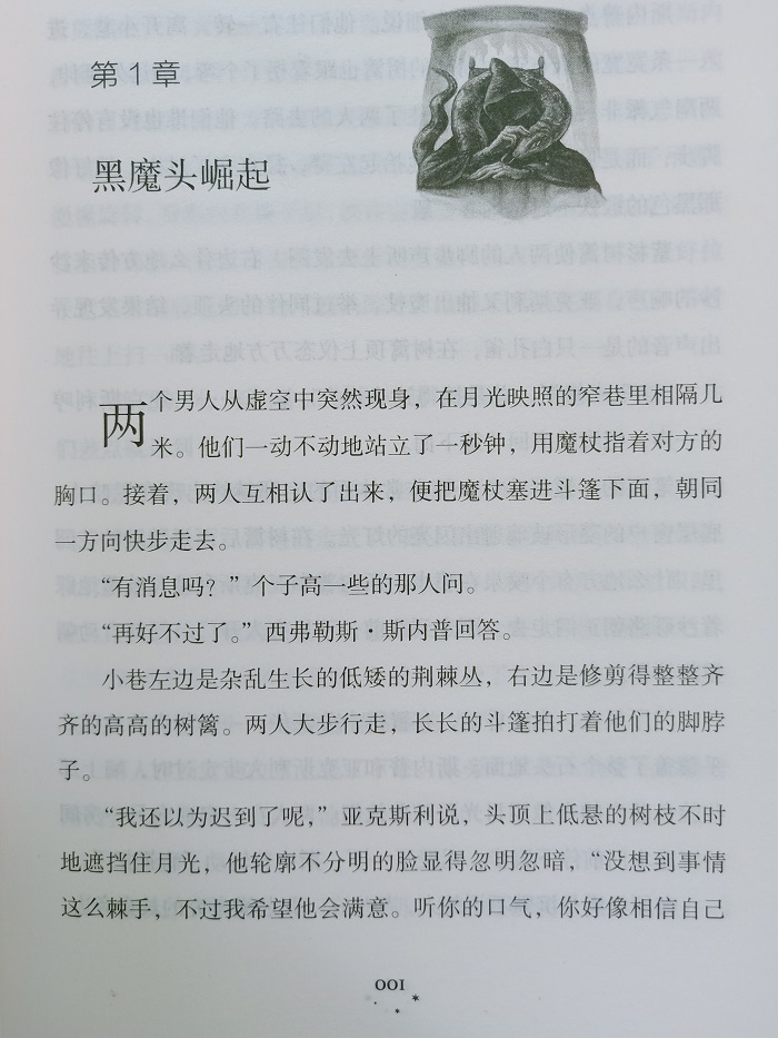 两个男人从虚空中突然现身,在月光映照的窄巷里相隔几米。他们一动不动地站立了一秒钟,用魔杖指着对方的胸口。接着,两人互相认了出来,便把魔杖塞进斗篷下面,朝同一方向快步走去。
