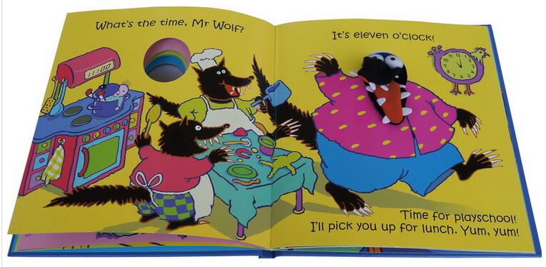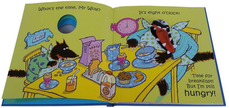 这本充满创意的图画书,利用总是赶到肚子饿的狼先生和小狼,带领小朋友一起学习和时间有关的英文单字和句子。书中处处充满了惊喜,每个页面都藏着两个时间(传统指针时间和电子数字时间),还有很多和“狼”有关故事中的主角,像是小红帽、小绵羊和小猪,另外,画面中场景和家具的设计也充满了巧思,爸爸妈妈和小朋友在阅读这本图画书时,除了角色扮演外,不妨也一起找找看,发现图画中隐藏的秘密。音频内容设计了各种不同段落,互搭互唱的交错学习,活络了整个故事情节; 小朋友,把手钻进布偶里,跟着音乐一起摇摆吧!!