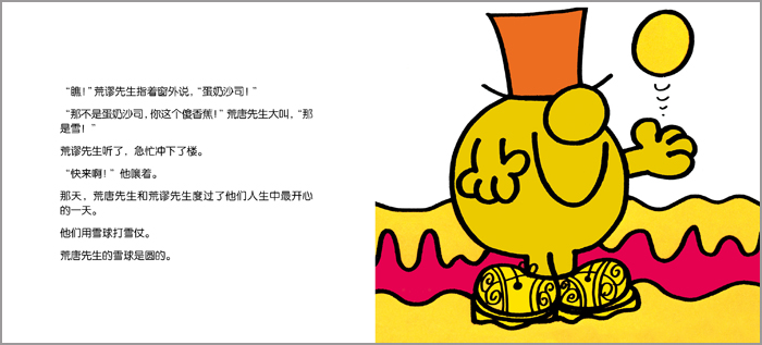 “奇先生妙小姐”把人的某一身体特征或性格特征典型化、夸张化,铺陈出好笑的故事。在生活中,大人们也常常感觉到,让幼儿认知实物的特征不难,如,高矮胖瘦、冷热硬软。可是,如果幼儿问起一些抽象词汇,如,糊涂、乐观、荒唐、傲慢,常常是大人解释不清,幼儿理解不易。“奇先生妙小姐”用这些抽象概念作为人物性格特征,制造出故事矛盾,孩子当然乐不可支。