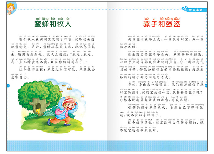 《伊索寓言》是世界上最早的、流传最广的寓言故事集。《伊索寓言》原书名为《埃索波斯故事集成》,是古希腊、古罗马时代传的讽喻故事,经后人加工,成为现在流传的《伊索寓言》。寓言故事的主人公多为拟人化的动物形象,比喻恰当、形象生动,通常在结尾以一句话画龙点睛地揭示蕴含的道理,教人如何处世和做人。故事集里的寓言文字简洁、幽默,又充满智慧,将深刻的人生哲理蕴藏于短小精悍的故事当中,以小见大、妙趣横生。