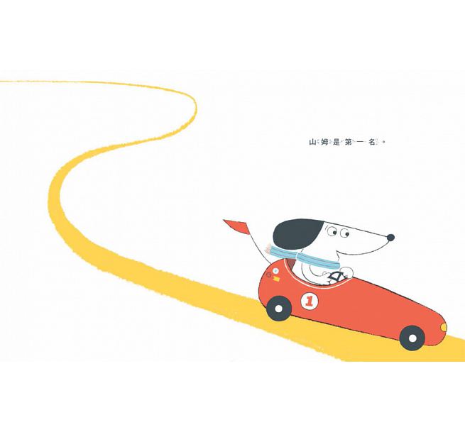 狗狗山姆開著拉風的紅跑車,是賽車場上耀眼的第一名,但有一天,他竟輸給了最好的朋友大象美琪,他的世界瞬間慘藍一片……他決心在下次比賽奪回寶座!第二次比賽時,狗狗山姆使盡全力,衝向黑白的終點線,但車道中央卻意外冒出五隻正在過街的小雞,難道狗狗山姆又要和亮晃晃的獎盃擦身而過了嗎? 人生就像一場場賽車,即便全力衝刺,也不可能每次都當第一名,而遇到突發狀況時,更考驗著一個人要如何抉擇。能在過程中尋獲自己真正的價值,才能誠心為朋友祝福,也為自己喝采!