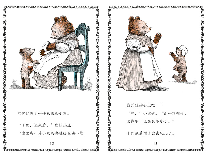 天冷了,熊妈妈知道真正的外套才能让小熊温暖。
