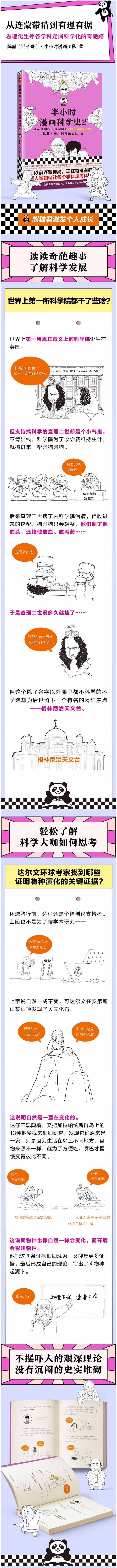 通过手绘漫画的形式,陈磊(混子哥)及其半小时漫画团队向读者呈现了从文艺复兴到次工业革命,各个学科走向科学化的过程:拉瓦锡给铅条盖上真空罩,让化学结束了啥是元素全靠猜的局面;阿伏伽德罗律师转行切原子,成功提出分子论;人类异想天开要发明永动机,却让热力学大步向前发展;环球航行发现物种演化秘密的达尔文,结束了上帝作为专享造物主的局面……不摆吓人的艰深理论,没有沉闷的史实堆砌,看人类从连蒙带猜到有理有据,让各个学科走上科学化的奇葩之路。翻开本书,在嘻嘻哈哈中读懂人类如何从蒙昧走向理性。