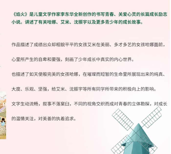 *海飞、曹文轩、朱永新等联袂推荐,称其内容为“少年小说、青春故事”,有意境,有人物,有精神,一往无前,一路向高,诗性呈现出少年成长别样的花开之声。