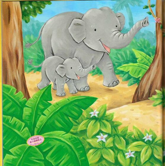 故事很简单,讲述的是小象穿过丛林,到小溪洗澡,洗澡完后再跟大家say good bye的故事。