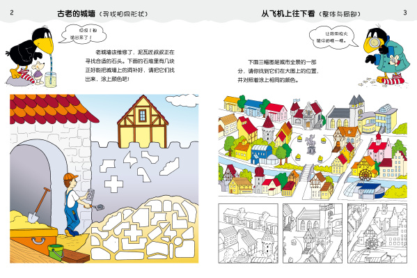 趣味十足,贴近幼儿的认知心理。3-6岁孩子的早期阅读以读图为主,本书在绚丽的彩图之外,还有相当篇幅的黑白插图可供孩子做完练习后涂色,激发其绘画兴趣,提升其动手能力。除此之外,还有找不同、卡片接龙、九宫格游戏、剪贴明信片等丰富的题型,让孩子的学习灵活而充满乐趣。值得一提的是,本书还有调皮的花袜子小乌鸦全程陪伴,在开篇调侃逗乐,让学习更加轻松。