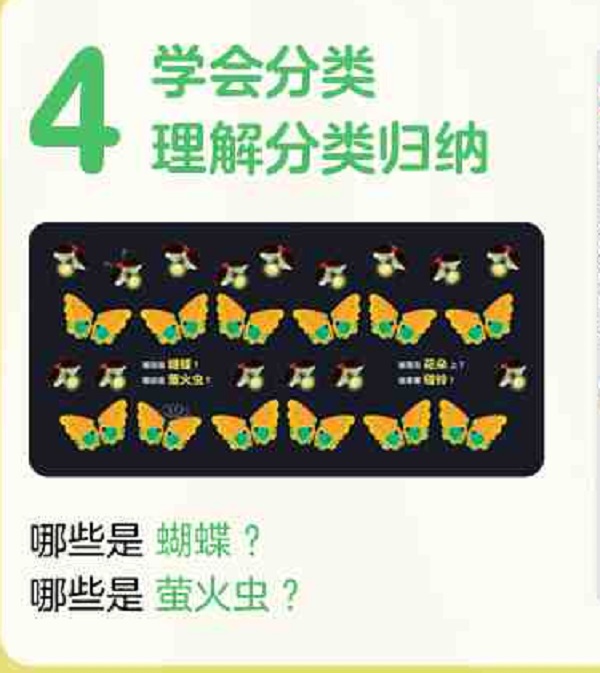 本册通过观察两种相似动物,学会分类。涉及动物:河马和犀牛、海豹和海狮、啄木鸟和鹦鹉、萤火虫和蝴蝶、松鼠和仓鼠、刺猬和豪猪变色龙和青蛙、羊驼和骆驼。每个对页中均设有两个专注力训练游戏:1、通过观察找到特定的动物,如:谁的嘴里叼着小虫子?谁抱着球?2、与乐器认知结合,通过观察找到画面中带有特定乐器的动物,如:谁拿着话筒?谁背着鼓?书末将所有带着乐器的动物汇聚在一起,举办森林音乐会。亲子共读时,可以提前引导孩子。例如,阅读过程中向孩子提问:“鹦鹉拿着话筒会去做什么呢?”,让孩子充分发挥想象力。