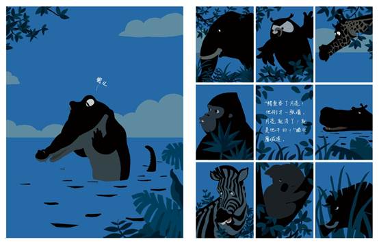 鳄鱼真的吃了月亮吗?会不会是那个看似无辜的考拉吃掉了月亮。除此之外,还有其他的可能吗?当我们给孩子读完故事,讨论起情节,我们就知道创作者设置的魔法在孩子身上起作用了。它诱发我们去思考、讨论,甚至是和作者一起去完成这个故事,如此一本图画书才算有了*好的命运。