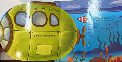 小丑鱼看见了一艘绿色的潜水艇。