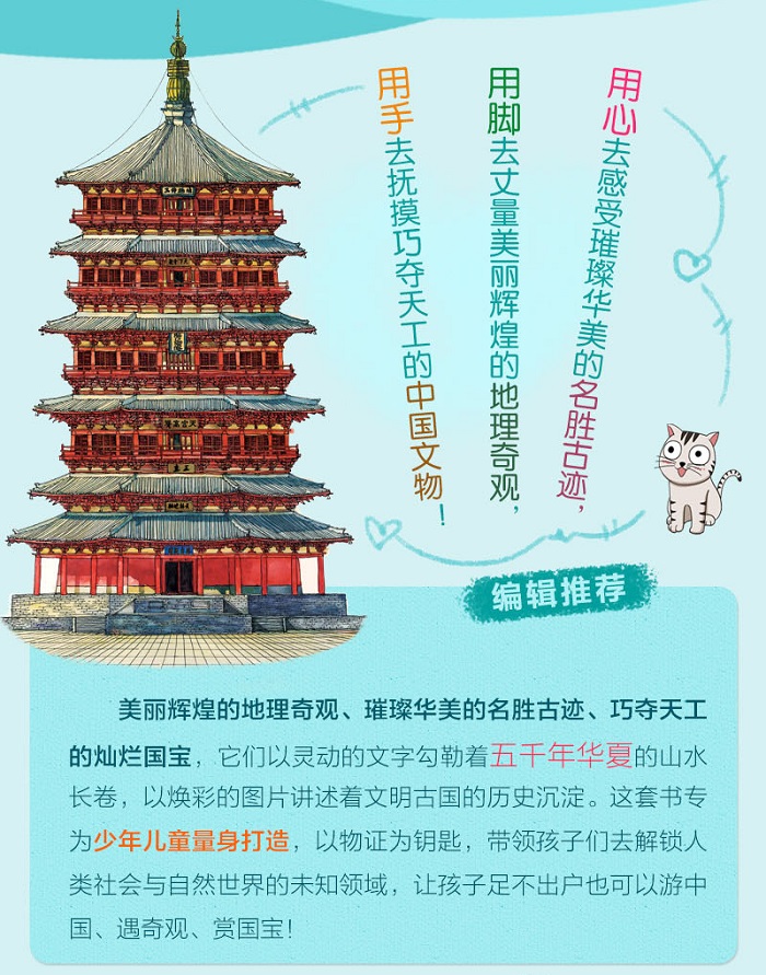 美丽辉煌的地理奇观、璀璨华美的名胜古迹、巧夺天工的灿烂国宝,它们以灵动的文字勾勒着五千年华夏的山水长卷,以焕彩的图片讲述着文明古国的历史沉淀。这套书专为少年儿童量身打造,以物证为钥匙,带领孩子们去解锁人类社会与自然世界的未知领域,让孩子足不出户也可以游中国、遇奇观、赏国宝!