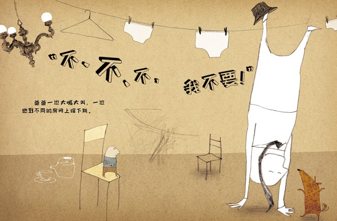 在这本书里,爸爸的行为滑稽又夸张,晚上不愿意睡觉的孩子一定能从中看到自己的影子。并且,他们能从每一页的画面中发现趣味十足的细节。