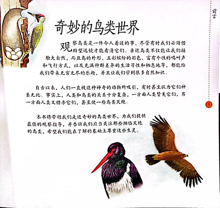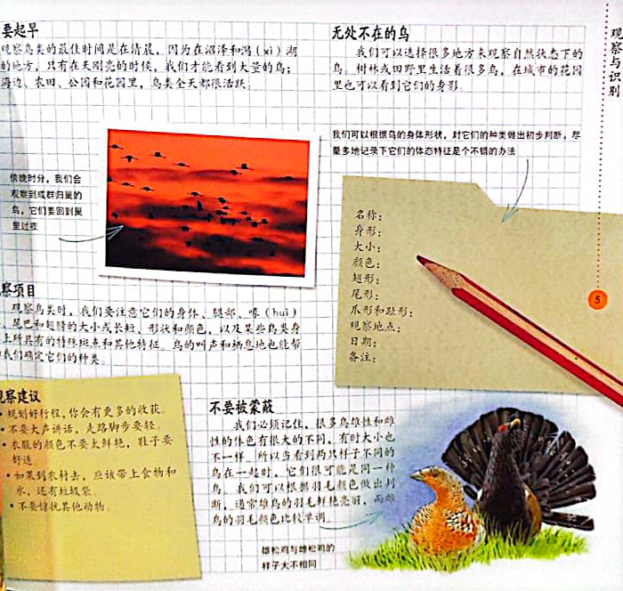 这是“去野外:自然探秘百科”从书分册之一。这套从书,知识全面,讲述角度符合儿童特点,是儿童对大自然的理解入手的科普童书。对自然界中的鸟类进行观察无疑是孩子最着迷的活动之一。观察活动包括多个方面,如观察鸟的大小、颜色、叫声、种类、飞行方式、生活习惯、栖息地等。此外,在我们享受这种乐趣的同时,还可以获得许多关于鸟类相关的知识。这本书就是指导我们如何观察鸟,同时,介绍有关鸟类的各种知识,它将带领我们进入精彩的鸟类世界。