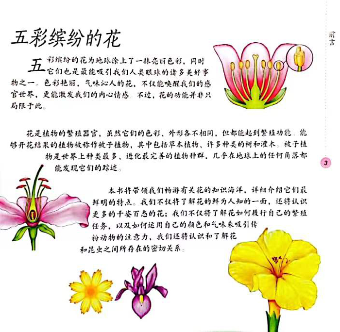 本书是“去野外:自然探秘百科”系列的分册之一。这套丛书知识全面,讲述角度符合儿童特点,它从儿童对大自然的理解入手的科普童书。花是植物的最为丰富多彩的组成部分,它有着各种各样的颜色和形态,总是能最先吸引了我们的注意力。这本书就是要带领我们进入有关花的知识的世界。我们将了解那些最具特色的花;认识花的最隐蔽部位;以及学会观察和识别那些特别构造,并知道它们是如何履行自己的使命的。此外,书中还介绍一些有关花的有趣的知识,我们会发现花的世界原来如此神奇。